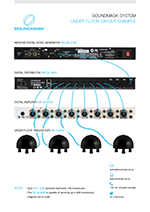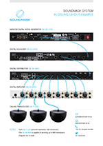 Este es el tipo de configuración que se usaría para un sistema subterráneo donde se requiere un potente servicio de enmascaramiento de sonido, por ejemplo, en edificios de gran altura. El distribuidor digital de Soundmask emparejado con el amplificador digital puede acoplarse con un solo generador para alimentar hasta 800 transductores con 8 zonas independientes.