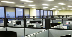 Se requería un sistema Soundmask zonificado en AMP Financial Services, donde el molesto ruido de los ascensores (arriba) era diferente al de la oficina de planta abierta y el área de recepción.
