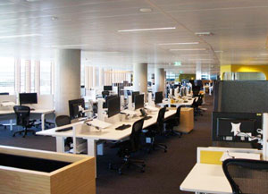 Los edificios con calificación Green Star, como la sede del Commonwealth Bank, requieren la introducción de enmascaramiento de sonido debido al bajo nivel de sonido de fondo que hace que el ruido que distrae sea más prominente. |